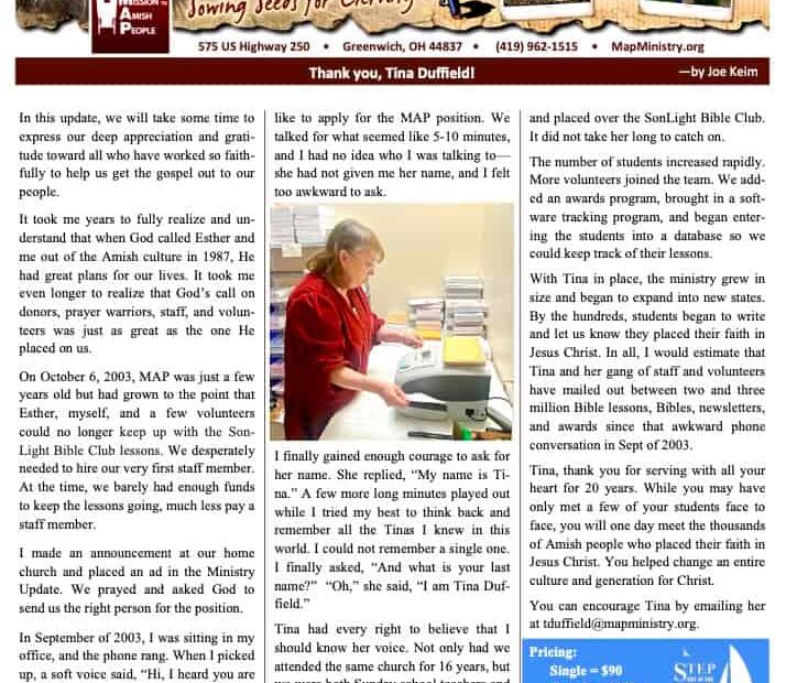 August 2023 IN THIS ISSUE: Bible School Amish Awareness Conference Fundraiser Success! The ABC Project Receives a Large Donation Bible School! For 15 years, I dreamed about one day being able to offer a Bible…