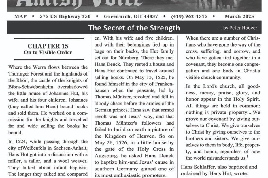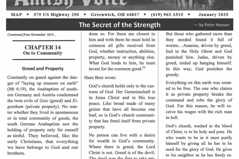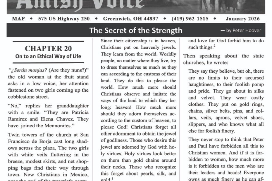 Amish Voice – January 2026 IN THIS ISSUE: The Secret of the Strength – Peter Hoover Knocked Off Your Horse – Ray Burkolder Amish Traditions and Double Standards – Rhoda Schmucker Giving and Receiving Love –… Amish Voice – January 2026