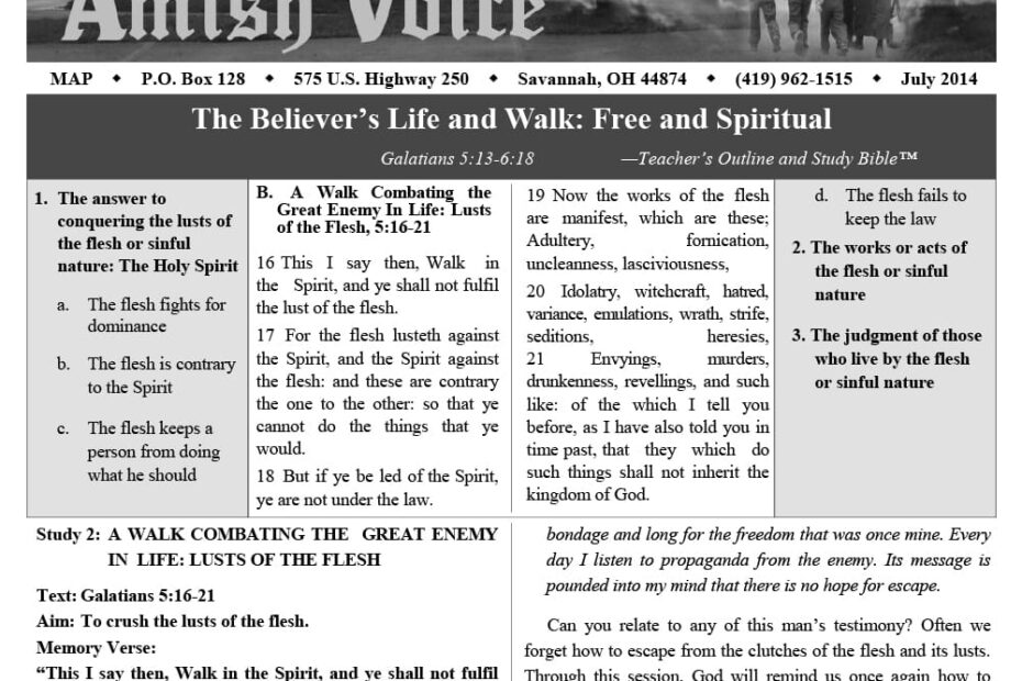 Amish Voice – July 2014 IN THIS ISSUE: The Believer’s Life and Walk: Free and Spiritual Give it to ME, Says the Lord – Norma Miller Salvation vs Rewards (Continued from the May, 2014 Issue of…