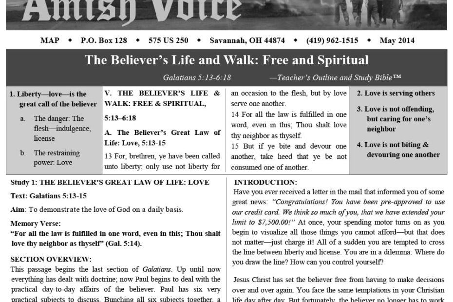 Amish Voice – May 2014 IN THIS ISSUE: The Believer’s Life and Walk: Free and Spiritual Conference Calls! Are You a Thankful Person? – Joe Keim Parachutes and Safety Lines – Eli Stutzman Christian History Corner – Story…