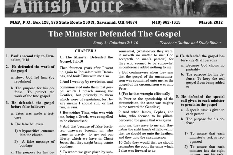 Amish Voice – March 2012 IN THIS ISSUE: The Minister Defended The Gospel How Great Is Our God? – Jonathan Helmuth The Magic Is Not In The Faucet – Joe Keim How to Combat Sexual…