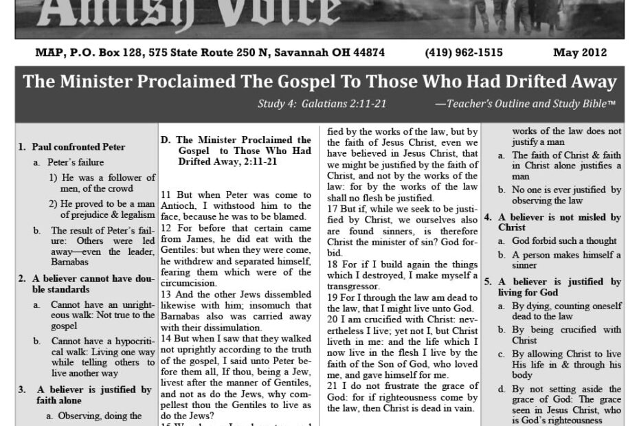 Amish Voice – November 2012 IN THIS ISSUE: The Proof That Man is Justified by Faith Alone and Not By Works Separation from the World (Part 2) – J. Martin The Value of Building on a…