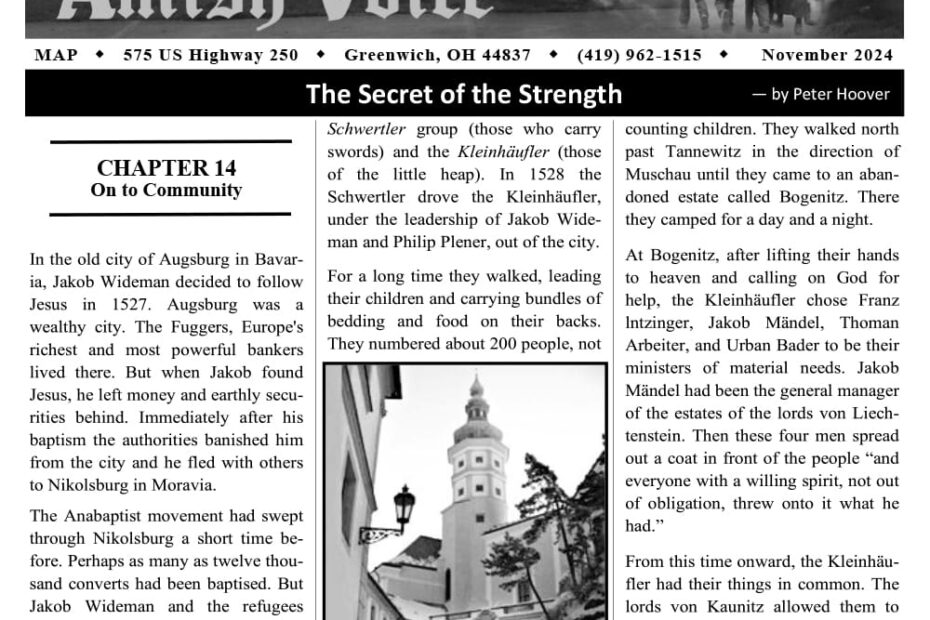 Amish Voice – November 2024 IN THIS ISSUE: The Secret of the Strength – Peter Hoover What is the Will of the Father? – Harold Sadlier Stepping Out of the Boat – Andrew Geesey A Glimpse… Amish Voice – November 2024