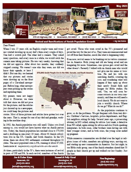 July 2023 IN THIS ISSUE: Delivered Spiritually and Physically 3-Day Discipleship Training Seminar Delivered Spiritually and Physically! I was born and raised in the Amish religion. I am no longer Amish. After many years of…
