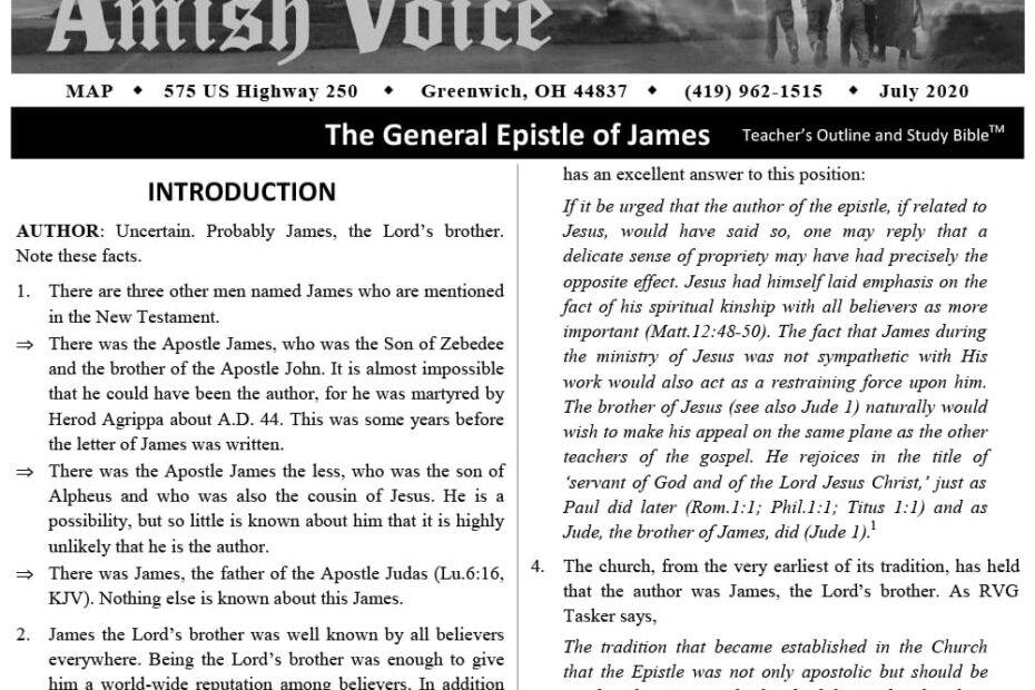 Amish Voice – July 2020 IN THIS ISSUE: The General Epistle of James – Teacher’s Outline and Study Bible™ The Power of the Tongue – Joe Keim The Woman, A Helper – Norma Miller Does God Care? – Ernie… Amish Voice – July 2020