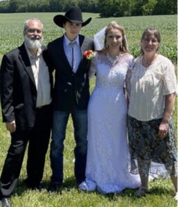 On June 18th, a group of about 75 former Amish gathered at a nearby property and celebrated Chriss and Saloma’s marriage vows to each other. Saloma’s dad is a brother to Esther; her mom is my oldest sister. As we were preparing for the wedding ceremony a few months earlier, Esther and I shared the gospel with the young couple; both prayed and asked Jesus to save them. That night we cried tears of joy and thanked God for His great gift of salvation.