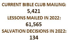 Our Bible Club (ages 5 to adult) is going through a growth spurt! Every two weeks, we have been mailing around 5,000 lessons…which is 1,000 more than our usual amount! Praise God! We are very thankful for the financial gifts that have recently been given to help us with the Bible Club mailing expenses!