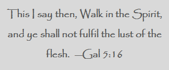 This I say then, Walk in the Spirit, and ye shall not fulfil the lust of the flesh. For the flesh lusteth against the Spirit, and the Spirit against the flesh: and these are contrary the one to the other: so that ye cannot do the things that ye would (Gal 5:16-17).