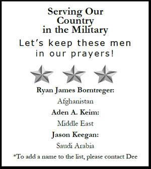 This note comes from Barbara Burkholder: “My brother-in-law Aden Keim is currently deployed in the Middle East. Prayers are much appreciated and if anyone is interested in sending him a care package or a letter of encouragement they can e-mail me for his address at barbarakeim72@gmail.com. Until we get the OK from Aden to publish his address we don't want to have the address published for security reasons. But I know he would be greatly encouraged with any kind of correspondence! It has been a difficult time and he could use the encouragement! He is scheduled to be deployed through the end of September.”