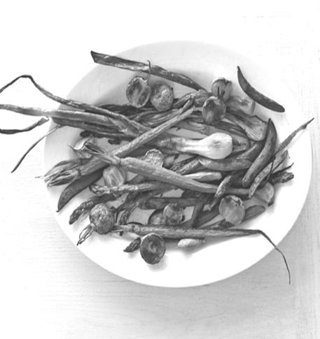 Ingredients: 1 lb. spring vegetables (such as carrots, asparagus, radishes, spring onions, or sugar snap peas), trimmed or peeled if needed, cut into same-size pieces 4 unpeeled garlic cloves 2 tablespoons olive oil Salt and pepper to taste Preheat oven to 450°F. Combine vegetables, garlic, and oil in a large bowl. Season with salt and pepper; toss to coat. Spread out in a single layer on a rimmed baking sheet. Roast, stirring halfway through, until tender, golden brown, and charred in spots, about 20 minutes. Serve warm or at room temperature.