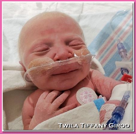 Twila Tiffany Girod was born October 21, 2020! We had a home-birth. Poly was barely in labor for half an hour before Twila came! A neighbor, who is an EMT, and I delivered her!