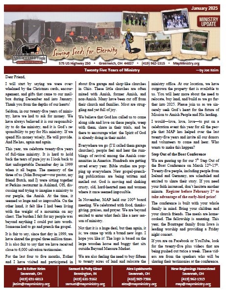 Mission to Amish People was founded in 2001 with the purpose of evangelizing and discipling Amish and Former Amish as well as assisting those that leave the Amish by providing education, housing, and basic life skill training. read more...
