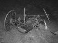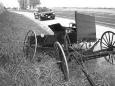 fast moving car rammed a horse and buggy.